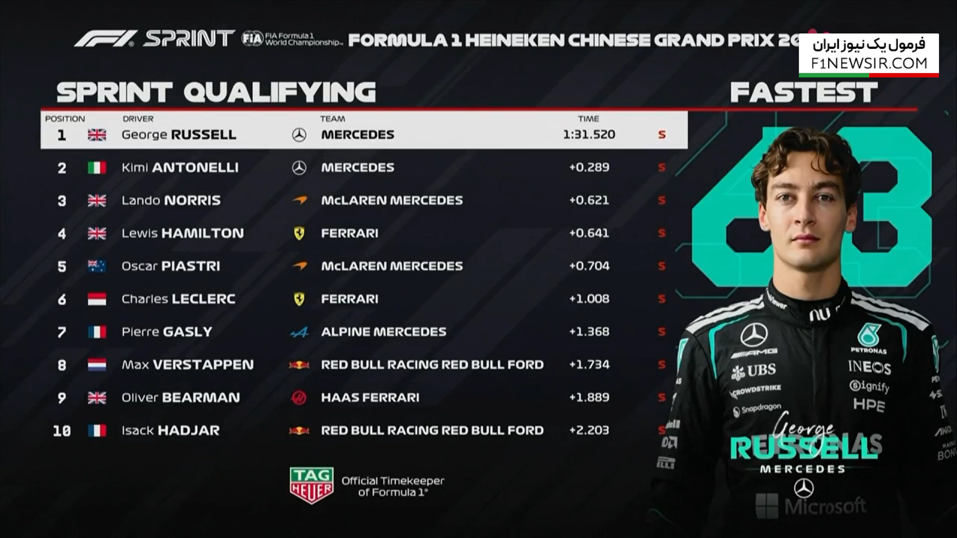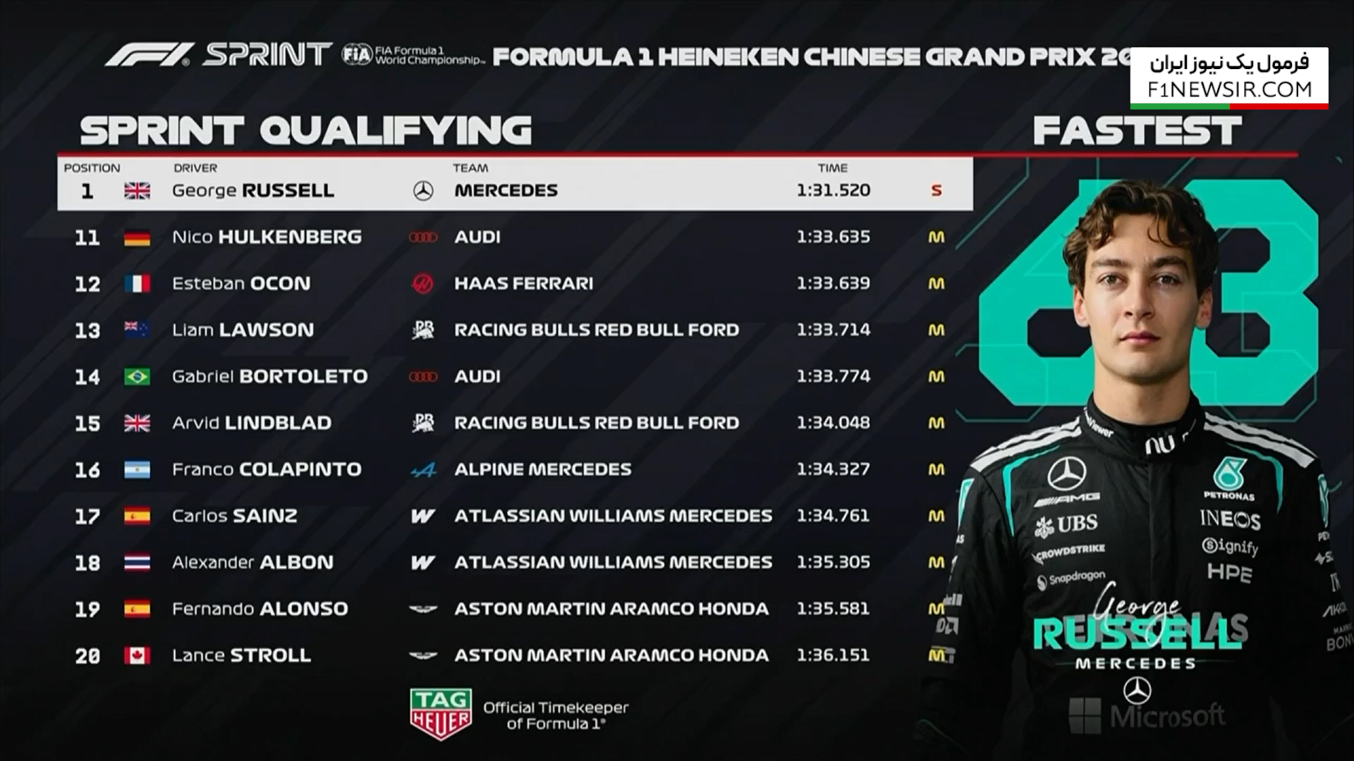 تعیین خط اسپرینت گرندپری چین ۲۰۲۶ با تاخت و تاز مرسدس و راسل به پایان رسید.